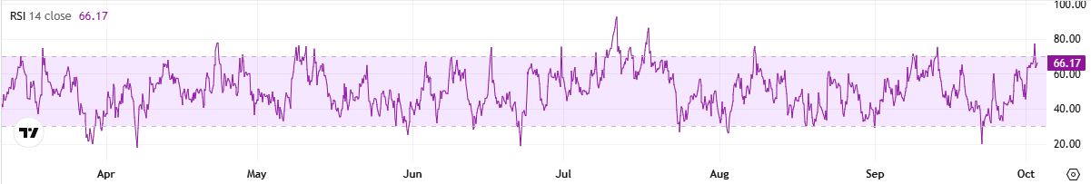 Despite the overall optimism, investors should stay cautious and keep an eye on the Relative Strength Index, which is close to the bearish territory of 70. Such readings suggest the asset could be overbought and headed for a short-term pullback, whereas anything below 30 might be interpreted as a buying opportunity.