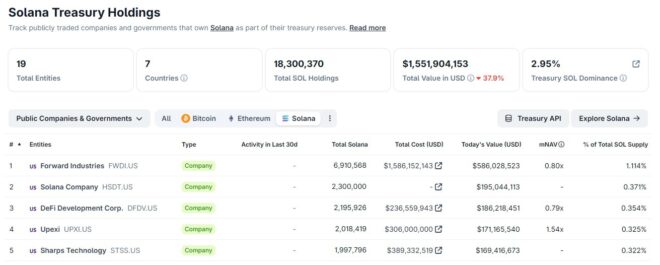 Publicly listed companies that hold Solana as a treasury asset are sitting...