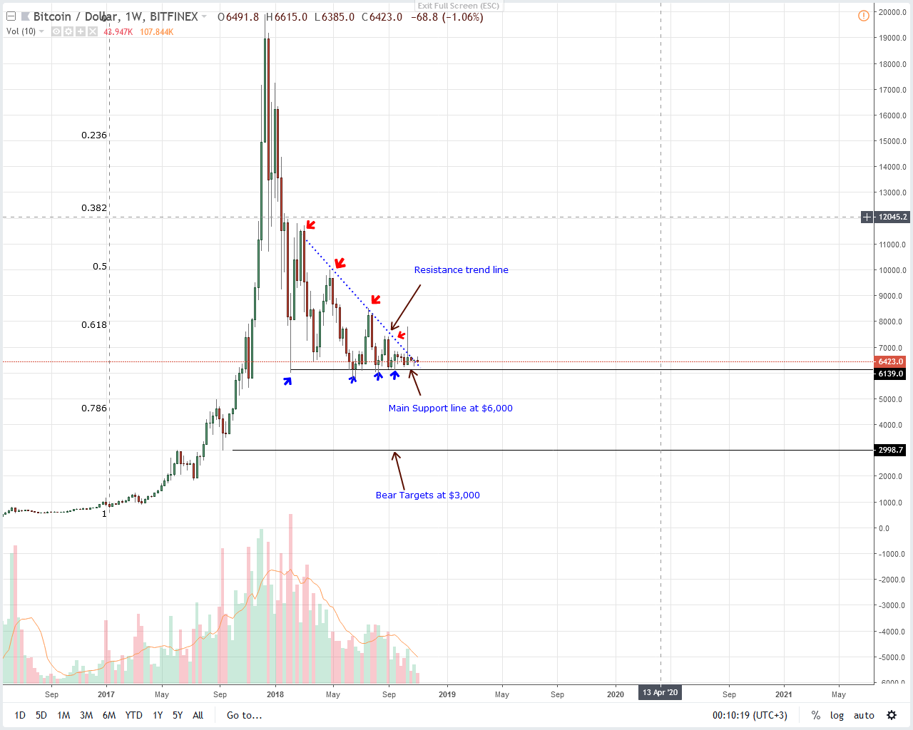 Bitcoin Price Weekly Analysis: BTC/USD Remains At Risk Below $6,300